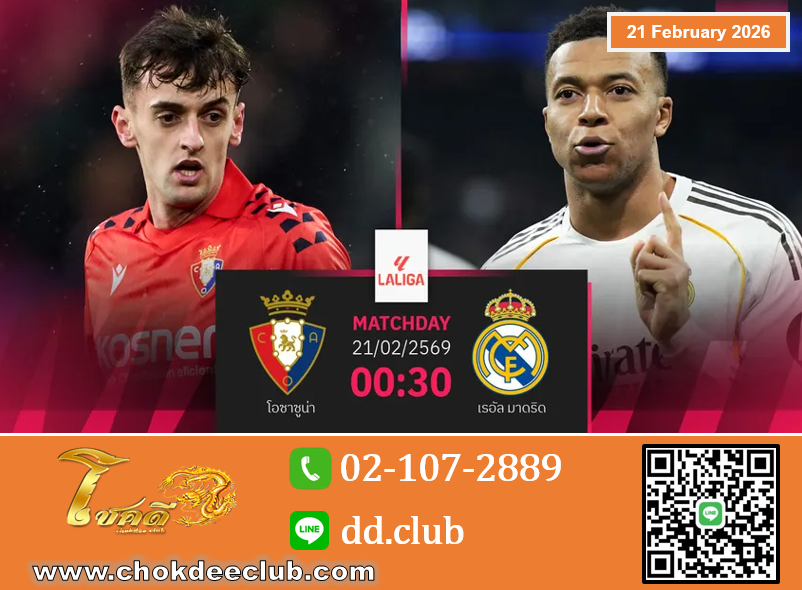 วิเคราะห์บอล โอซาซูน่า vs เรอัล มาดริด 21 ก.พ. 69 : ราชันล่าชัยรวด 9 นัดยึดจ่าฝูง