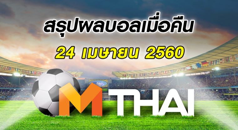 สรุปผลบอลเมื่อคืน วันจันทร์ที่ 24 เมษายน 2560