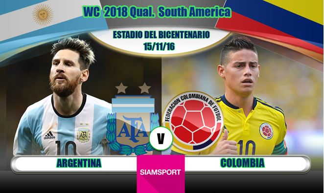 “ฟ้าขาว” อาร์เจนติน่า หวังเก็บชัยเพื่อลืมความพ่ายแพ้ยับเยินเกมที่แล้ว นัดนี้ส่งแนวรุกระดับพระกาฬ นำโดย ลีโอเนล เมสซี่ กัปตันทีม เฝ้าถิ่นดวล โคลอมเบีย ที่มี ฮาเมส โรดรีเกซ เป็นแม่ทัพคุมแดนกลาง ในการแข่งขันฟุตบอลโลก 2018 รอบคัดเลือก โซนอเมริกาใต้ วันอังคารที่ 15 พฤศจิกายน 2559 (เช้าวันพุธ 06.30 น.)