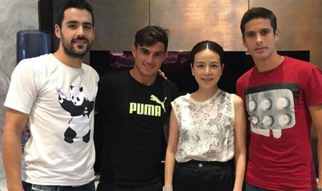 ”มาดามแป้ง”นวลพรรณ ล่ำซำ ประธานสโมสรการท่าเรือ เอฟซี เปิดตัวแข้งใหม่ชาวสเปนดีกรีพระกาฬ อย่าง อัสตรูบาล ปาดรอน (เสื้อดำ) ที่ย้ายจาก ลาส ปัลมาส ในศึกลาลีกา สเปน เพื่อค้าแข้งในศึกไทยลีก2017