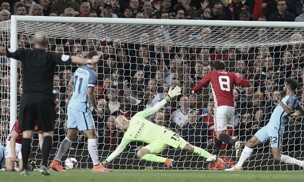 นาทีที่ 54 ”ปีศาจแดง” ต่อเกมได้สวย ซลาตัน อิบราฮิโมวิช ลากผ่าน นิโกลัส โอตาเมนดี้ ก่อนตบเข้ากลางอันเดร์ เอร์เรร่า เบียดกับ แฟร์นานโด ล้มลงบอลเลยไปถึง ฆวน มาต้า ซัดด้วยขวาตุงตาข่าย แมนฯ ยูไนเต็ด ออกนำ 1-0