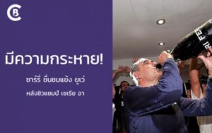 เมาริซิโอ ซาร์รี่ ผู้จัดการทีม ยูเวนตุส ออกโรงกล่าวติดตลกชื่นชมลูกทีมต้องเก่งจริงๆถึงคว้าแชมป์ กัลโช่ เซเรีย อา อิตาลี ภายใต้การคุมทีมของเขาได้สำเร็จ พร้อมยกความกระหายของผู้เล่นช่วยคว้าถ้วยเป็นสมัยที่ 9 ติดต่อกัน โดยทัพ “ม้าลาย” คว้าแชมป์ลีกพาสต้าได้สำเร็จอีกครั้ง หลังเอาชนะ ซามพ์โดเรีย ได้สำเร็จด้วยสกอร์ 2-0 ส่งผลให้มีคะแนนที่ 83 แต้ม ทิ้งห่างอันดับ 2 มากถึง 7 คะแนน แม้จะเหลือการแข่งขันอีก 2 เกมก็ตาม ซึ่ง ซาร์รี่ ก็ได้ออกมาชื่นชมลูกทีมของตัวเองด้วย “ผมบอกพวกเขาไปว่า หากคุณชนะถ้วยรางวัลกับคนที่ไม่เคยชนะอะไรเลยอย่างผม คุณต้องเก่งจริงๆ” ซาร์รี่ กล่าวตอบหลังถูกถามพูดอะไรระหว่างฉลองกับลูกทีม “นับตั้งแต่วันแรกที่ผมย่างก้าวเข้ามา ผมได้เห็นผู้เล่นไม่ใช่เพียงระดับโลกเท่านั้น เมื่อเวลาผ่านไปคุณจะชอบพวกเขาและความเหนียวแน่นจากความเป็นมืออาชีพ” “วันแรกที่ผมเข้ามายังห้องแต่งตัวและรู้ว่ามีผู้เล่นตัวท็อปบางรายอยู่ แต่หลังจากนั้นคุณจะเดินเข้าไปด้วยความรู้สึกที่ว่างมีผู้เล่นชั้นเยี่ยมคนอื่นๆที่คุณสามารถวางใจได้เช่นกัน” “มันเป็นความรู้สึกที่พิเศษแน่นอน มันเป็นเรื่องยากที่จะชนะ มันยิ่งยุ่งยากมากขึ้นที่จะรักษาชัยชนะได้” “มันไม่ใช่การเดินเล่นในสวนสาธารณะ มันยาวนาน, ยากลำบาก, มีความตึงเครียด ซึ่งเหล่าผู้เล่นควรได้รับเครดิตอย่างมากสำหรับความกระหายต่อเนื่องและความมุ่งมั่นที่จะลุยต่อไปหลังจากชนะถ้วยมา 8 ครั้งติดต่อกัน”