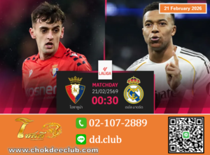 เสียสถิติ! “ราชันชุดขาว” เรอัล มาดริด จ่าฝูงลาลีกา พลาดท่าบุกพ่าย โอซาซูน่า 1-2 โดยโดนทีเด็ดของ รูเบน การ์เซีย ซัดประตูชัยในช่วงทดเจ็บ แม้ วินิซิอุส จูเนียร์ จะช่วยยิงคืนให้ทีมได้ก็ตาม ส่งผลให้ช่องว่างคะแนนเหนือ บาร์เซโลน่า เหลือเพียง 2 แต้ม แถมแข่งมากกว่า 1 นัด ศึกฟุตบอล ลา ลีกา สเปน ฤดูกาล 2025/26 นัดประจำวันอาทิตย์ที่ 22 กุมภาพันธ์ 2569 เรอัล มาดริด จ่าฝูงของตาราง บุกไปเยือนถิ่น เอล ซาดาร์ ของ โอซาซูน่า ทีมอันดับ 9 เริ่มเกมมาในช่วง 25 นาทีแรก แม้เรอัล มาดริด จะพยายามเดินเกมบุกเข้าใส่ แต่เจ้าถิ่นยังคงรับได้อย่างเหนียวแน่น จนกระทั่งนาทีที่ 34 เกิดจังหวะปัญหาเมื่อ อันเต้ […]