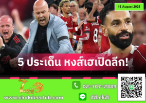 ลิเวอร์พูล จะเปิดฉากฤดูกาล 2025/2026 ด้วยการพบกับ บอร์นมัธ ที่สนามแอนฟิลด์ วันศุกร์ที่ 15 สิงหาคมนี้ โดยการเล่นในบ้านรับมือ “เดอะ เชอร์รี่ส์” นั้น “หงส์แดง” มักจะทำผลงานได้ดี ขณะเดียวกัน โมฮาเหม็ด ซาลาห์ มีลุ้นสร้างสถิติใหม่ตั้งแต่ต้นซีซั่น และสาวก “เดอะ ค็อป” จะได้เห็นแข้งใหม่ลงสนาม รวมทั้งพิธีรำลึกถึง ดีโอโก้ โชต้า กับน้องชายที่จากไปด้วยอุบัติเหตุทางรถยนต์ซึ่งไม่ใช่เกมนี้เท่านั้น แต่ยังรวมทุกทีมและทุกสนามจะร่วมไว้อาลัยอย่างพร้อมเพรียงกันด้วย 1. แข้งใหม่ 4 คนพร้อมลุยเกมพรีเมียร์ลีก หลังจากหลายปีที่ใช้จ่ายอย่างประหยัด ลิเวอร์พูล ได้ทุ่มเงินครั้งใหญ่ในฤดูร้อนนี้ เพื่อเสริมความแข็งแกร่งให้กับทีมอย่างเต็มที่ สำหรับการป้องกันแชมป์พรีเมียร์ลีกในซีซั่นนี้ สำหรับเกมวันศุกร์นี้ นักเตะใหม่ที่ “หงส์แดง” ดึงตัวมาร่วมทัพอย่างน้อย 4 รายได้แก่ ฟลอเรียน เวียร์ตซ์, เจเรมี่ ฟริมปง, มิลอส เคอร์เคซ และ อูโก้ เอกิติเก้ จะได้ลงสนามเปิดตัวในนามแข้ง ลิเวอร์พูล สำหรับเกมลีกนัดเปิดฤดูกาล […]