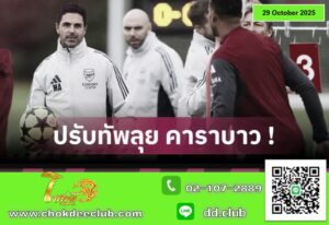 คืนวันพุธที่ 29 ตุลาคมนี้ “ไอ้ปืนใหญ่” อาร์เซน่อล จ่าฝูง พรีเมียร์ลีก มีโปรแกรมเตะถ้วย คาราบาว คัพ รอบสี่ ซึ่งจะเปิดรัง เอมิเรตส์ สเตเดี้ยม ดวลกับ ไบรท์ตัน แอนด์ โฮฟ อัลเบี้ยน ที่ล่าสุดเกมลีกเพิ่งออกไปแพ้ แมนเชสเตอร์ ยูไนเต็ด 2-4 เมื่อช่วงสุดสัปดาห์ และนี่คือชุด 11 ผู้เล่นตัวจริงที่กุนซือ มิเกล อาร์เตต้า น่าจะเลือกใช้ในเกมนี้ ซึ่งดูแล้วปรับทัพเกือบจะยกชุดแน่นอน จากเกมลีกนัดที่ทีมเปิดบ้านเชือด คริสตัล พาเลซ 1-0 เมื่อวันอาทิตย์ที่ 26 ตุลาคม ที่ผ่านมา – ผู้รักษาประตู : เกปา อาร์รีซาบาลาก้า อาร์เตต้า น่าจะให้โอกาส เกปา ลงเฝ้าเสาเป็นตัวจริงแทน ดาบิด ราย่า เหมือนกับเกมรอบสามของรายการนี้เมื่อช่วงปลายเดือนกันยายน – แบ็กโฟร์ : เบน […]