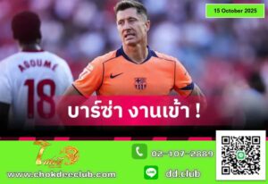 โรเบิร์ต เลวานดอฟสกี้ ดาวยิงตัวเก่ง บาร์เซโลน่า จะพลาดเกม “เอล กลาซีโก” กับ เรอัล มาดริด ช่วงปลายเดือนนี้ หลังมีปัญหาบาดเจ็บเกี่ยวกับแฮมสตริง บาร์เซโลน่า แถลงการณ์ยืนยัน เมื่อวันอังคารที่ 14 ตุลาคม ว่า โรเบิร์ต เลวานดอฟสกี้ กองหน้าคนสำคัญเลือดโปล ได้รับบาดเจ็บบริเวณกล้ามเนื้อแฮมสตริงที่ต้นขาซ้าย และจะต้องพักแข้งระยะเวลาหนึ่ง ขึ้นอยู่กับการฟื้นตัวจากอาการบาดเจ็บ ด้านสื่อสเปนชี้ว่า เลวานดอฟสกี้ จะต้องพักแข้งเป็นเวลาราว 4 สัปดาห์ ซึ่งนั่นหมายความว่า บาร์ซ่า จะไม่มี ยอดดาวยิงวัย 37 ปี ในเกม ลา ลีกา นัด “เอล กลาซีโก” ที่ทีมมีคิวออกไปเยือน เรอัล มาดริด วันอาทิตย์ที่ 26 ตุลาคม รวมถึงสองเกมก่อนหน้า ที่จะเปิดบ้านดวล จีโรน่า วันเสาร์ที่ 18 ตุลาคมนี้ และเกม ยูฟ่า […]