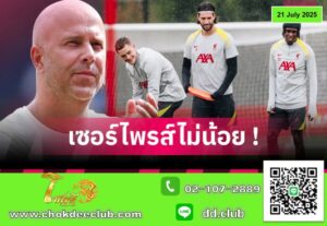 อาร์เน่อ สล็อต กุนซือลิเวอร์พูล ทำให้แฟนบอล “หงส์แดง” ต้องอึ้งอีกครั้งหลังจัดวางแท็กติกสุดเซอร์ไพรส์ในเกมอุ่นเครื่องแบบปิดสนามที่ไล่ต้อน สโต๊ค ซิตี้ 5-0 เมื่อวันอาทิตย์ที่ 20 กรกฎาคมที่ผ่านมา สำหรับเกมอุ่นเกือกแมตช์ที่สอง หลังนัดแรก “เดอะ เร้ดส์” บุกชนะ เปรสตัน นอร์ธเอนด์ 3-1 มีการจัดขึ้นที่สนามซ้อมแอกซ่า เทรนนิ่ง เซนเตอร์ โดยทีมส่ง ฟลอเรียน เวียร์ตซ์ ประเดิมสนาม ขณะที่ ดาร์วิน นูนเญซ ซัดแฮตทริก ส่วนอีกสองประตูเป็นผลงานของ ริโอ เอ็นกูโมฮา กับ เฟเดริโก้ เคียซ่า อย่างไรก็ตามหนึ่งในเรื่องที่น่าสนใจมากๆ ก็คือการจัดวางแท็กติกของโค้ชอาร์เน่อ โดย เอียน ดอยล์ นักข่าวจาก “ลิเวอร์พูล เอ็คโค่” รายงานว่าแมตช์นี้ โดมินิค โซโบซไล โดนจับให้เป็นเล่นตำแหน่งแบ็กขวา กัปตันทีมชาติฮังการี ซึ่งเป็นหนึ่งในคีย์แมนสำคัญในสามกองกลางชุดที่นำ “หงส์แดง” คว้าแชมป์พรีเมียร์ลีก ซีซั่นที่ผ่านมา จำเป็นต้องลงมาเล่นกองหลัง […]