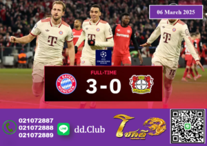 โอกาสลิ่วสู่รอบก่อนรองฯ แชมเปี้ยนส์ ลีก สดใสเหลือเกินสำหรับ บาเยิร์น หลังระเบิดฟอร์มเก่ง เปิดบ้านอัด เลเวอร์คูเซ่น 3-0 เมื่อคืนวันพุธ โดยที่นัดนี้ แฮร์รี เคน ยิงประตูเปิดหัวและปิดท้าย (Goal!!!) บาเยิร์น ออกสตาร์ทเกมได้ดีกว่าทีมเยือนชัดเจน และแค่นาทีที่ 9 ก็ได้ประตูขึ้นนำ 1-0 จากจังหวะที่ ไมเคิล โอลีเซ ครอสบอลจากฝั่งขวาเข้ามาตรงหน้าประตู และเป็น แฮร์รี เคน เข้าโหม่งเต็มๆ ส่งบอลพุ่งเบียดเสาอย่างเฉียบขาด นาทีที่ 22 “เสือใต้” เกือบได้ประตูเพิ่มจาก จามาล มูเซียลา ที่ได้โหม่งลูกเตะมุม บอลชนคานอย่างน่าเสียดาย และหลังจากนั้นสามนาทีได้เสียวอีกจากลูกยิงของ คิงสเลย์ โกมัน ที่พุ่งหลุดกรอบไปนิดเดียว (Goal!!!) เริ่มครึ่งหลังมาได้ไม่นาน นาทีที่ 54 “เสือใต้” ได้ประตู 2-0 จากความผิดพลาดของ มาเตจ์ โควาร์ นายทวาร เลเวอร์คูเซ่น ที่รับบอลจากลูกเปิดของ […]