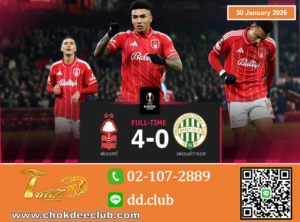 น็อตติงแฮม ฟอเรสต์ ปิดฉากรอบ ลีก เฟส ถ้วย ยูฟ่า ยูโรปา ลีก ได้อย่างสวยหรู พร้อมคว้าตั๋วเตะเพลย์ออฟ หลังเปิดบ้านถล่ม เฟเรนช์วารอส 4-0 เมื่อคืนวันพฤหัสบดี โดยนัดนี้ อีกอร์ เชซุส กดสองตุง ขณะที่ เจมส์ แม็คอาตี ซัดจุดโทษปิดท้าย ศึกฟุตบอล ยูฟ่า ยูโรปา ลีก 2025/26 รอบ ลีก เฟส นัดสุดท้าย ระหว่าง น็อตติงแฮม ฟอเรสต์ (อังกฤษ) พบ เฟเรนช์วารอส (ฮังการี) ที่สนาม ซิตี้ กราวด์ เมืองน็อตติงแฮม ประเทศอังกฤษ วันพฤหัสบดีที่ 29 มกราคม 2569 แค่นาทีที่ 17 ฟอเรสต์ ได้ประตูขึ้นนำ 1-0 จากการทำเข้าประตูตัวเองของ เบนเซ […]