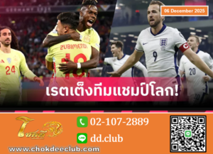 บ่อนยก สเปน เต็งหนึ่งแชมป์ฟุตบอลโลก 2026 หลังจากที่ทราบผลการจับสลากแบ่งกลุ่ม ส่วนแชมป์เก่า อาร์เจนตินา แค่เต็งสามร่วมกับ บราซิล และ ฝรั่งเศส ตราต่อรองแชมป์ฟุตบอลโลก 2026 ที่จะแข่งขันกันช่วงกลางปีหน้า ถูกอัปเดตล่าสุดโดย bet365 หลังเสร็จสิ้นพิธีจับสลากแบ่งกลุ่ม เมื่อวันศุกร์ที่ 5 ธันวาคม ที่ผ่านมา โดย สเปน ถูกยกเป็นเต็ง 1 ตามด้วย อังกฤษ และ อาร์เจนตินา แชมป์เก่า 10 อันดับทีมเต็งแชมป์ฟุตบอลโลก 2026 ล่าสุด 1. สเปน : 9/2 (แทง 2 ได้ 9 ไม่รวมทุน) 2. อังกฤษ : 11/2 3. ฝรั่งเศส : 8/1 = บราซิล : 8/1 […]