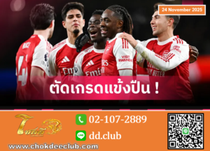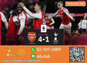 เอเบเรชี่ เอเซ่ ซัดแฮตทริค แม้ฝั่ง สเปอร์ส ตีตื้นจากลูกยิงเกือบครึ่งสนามสุดสวยของ ริชาร์ลิซอน แต่เท่านั้น อาร์เซน่อล สอยสบาย 4-1 “ปืนใหญ่” มีเพิ่ม 29 คะแนนทิ้ง เชลซี คู่แข่งในลีกนัดหน้า 6 แต้ม ส่วนกลางสัปดาห์ปะทะ บาเยิร์น ศึกชปล. สนาม : เอมิเรตส์ สเตเดี้ยม ศึกฟุตบอลพรีเมียร์ลีก อังกฤษ คืนวันอาทิตย์ที่ 23 พฤศจิกายนที่ผ่านมา “ปืนใหญ่” อาร์เซน่อล จ่าฝูงโอกาสดีในการทิ้งคู่แข่งอย่าง เชลซี-แมนซิตี้ ทำศึกนอร์ทลอนดอนดาร์บี้ดวล “ไก่เดือยทอง” สเปอร์ส ที่หวังชนะเพื่อยึดท็อปโฟร์ เริ่มเกมสามนาที เอเบเรชี่ เอเซ่ งัดบอลโด่งมาให้ เดแคลน ไรซ์ สอดวอลเลย์ตรงตัว กิเยร์โม่ วิคาริโอ ยืนบล็อกป้องกันไว้ได้ ผ่านมานาที 33 บูคาโย่ ซาก้า ซัดฟรีคิกด้านขวาของสนาม บอลพุ่งตรงหากรอบประตูนายด่านไก่เดือยทองเหินปัดทันเวลา ปืนใหญ่ออกนำ […]