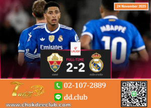 ผลบอล เอลเช่ 2-2 เรอัล มาดริด : ราชันตามตีสองหน! แบ่งแต้มนำฝูงหนี บาร์ซ่า คะแนนเดียว