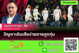 พรีเมียร์ลีกนัดที่ 23 อาร์เซน่อล ลุ้นเดินหน้าล่าแชมป์ เปิดเอมิเรตส์รับ แมนยู ที่ฟอร์มกระเตื้องภายใต้ ไมเคิ่ล คาร์ริค แม้แต้มบนตารางห่างกันถึง 15 คะแนน เกมนี้จึงมีผลต่อทิศทางฤดูกาลทั้งสองทีม พรีเมียร์ลีก อังกฤษ อาร์เซน่อล – แมนฯ ยูไนเต็ด เวลา : 23.30 น. ถ่ายทอดสด : MONOMAX สนาม : เอมิเรตส์ สเตเดี้ยม อาร์เซน่อล – วิกฤตแนวรับของ มิเกล อาร์เตต้า เริ่มคลี่คลาย หลัง ริคคาร์โด้ คาลาฟิออรี่ และ ปิเอโร่ อินกาปิเอ้ กลับมาซ้อมกับทีมชุดใหญ่ได้แล้วเมื่อวันศุกร์ แม้ยังไม่ยืนยันความพร้อม แต่คาดว่ามีลุ้นคัมแบ็กลงสนาม เท่ากับที่พลาดแน่ ๆ เหลือเพียง แม็กซ์ ดาวแมน ที่ยังฟื้นฟูอาการบาดเจ็บข้อเท้า ในแนวรุกเจอปัญหาที่น่ายินดีเมื่อ กาเบรียล เชซุส […]