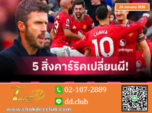 ไม่เชื่อก็ต้องเชื่อเมื่อ ไมเคิ่ล คาร์ริค กุนซือขัดตาทัพของ แมนฯ ยูไนเต็ด พาทีมบุกมาสยบ อาร์เซน่อล ได้ถึงรังด้วยสกอร์ 3-2 จากการฟาดแข้งเกม พรีเมียร์ลีก ที่สนาม เอมิเรตส์ สเตเดี้ยม เมื่อวันอาทิตย์ที่ 25 ม.ค.แม้ ผีแดง จะตกเป็นฝ่ายตามหลังก่อน แต่สามารถพลิกสถานการณ์แซงชนะคว้าสามแต้มเต็มได้สำเร็จพร้อมเปิดกว้างการลุ้นคว้าแชมป์ลีกอิงลิชอีกรอบ ขณะที่ตัว คาร์ริค เองพิสูจน์ให้เห็นว่าเหมาะที่จะนั่งเก้าอี้ตัวสำคัญอย่างถาวรจากการพาทีมกำชัยในเกมบิ๊กแมตช์ได้ทั้งสองนัด 1. ปืนจัดเต็ม เชซุส ยืนหอกปราบผี มิเกล อาร์เตต้า ผู้จัดการทีม อาร์เซน่อล สลับโผนักเตะตัวจริงสี่รายจากเกม แชมเปี้ยนส์ ลีก นัดบุกไปสยบ อินเตอร์ มิลาน เมื่อกลางสัปดาห์โดย กาเบรียล เชซุส รักษาตำแหน่งหัวหอกได้เช่นเดิมส่งผลให้ วิคตอร์ โยเคเรส ต้องนั่งข้างสนาม สำหรับสี่ดาวเตะ ท็อปกัน ที่ได้กลับมาลงบู๊ในเกมนี้ประกอบไปด้วย เดแคลน ไรซ์ , ปิเอโร่ อินกาปิเอ้ , กาเบรียล […]
