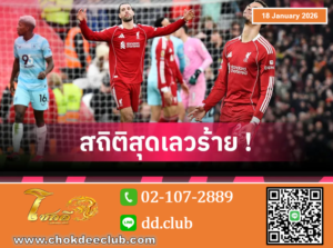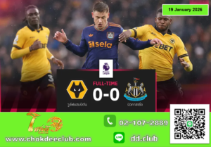 นิวคาสเซิ่ล ทำได้เพียงบุกไปแบ่งแต้มกับ วูล์ฟแฮมป์ตัน บ๊วยของตารางแบบไร้กสกอร์ ทำให้ทัพ “สาลิกาดง” ขยับแซง ซันเดอร์แลนด์ ขึ้นไปรั้งที่ 8 ของตาราง ศึกฟุตบอลพรีเมียร์ลีก อังกฤษ ประจำวันที่ 18 ม.ค. 69 ที่สนามโมลินิวซ์ สเตเดี้ยม ระหว่าง วูล์ฟแฮมป์ตัน พบ นิวคาสเซิ่ล ครึ่งแรกเปิดฉากเป็น นิวคาสเซฺ่ล ที่ครองเกมบุกใส่ได้มากกว่า แต่หาจังหวะจบสกอร์ไม่ได้ ส่วน วูล์ฟส์ มีจังหวะโต้กลับเป็นระยะ ก่อนที่ น.44 จะเป็นฝ่ายได้ลุ้นก่อน จากจังหวะลูกเตะมุมแนวรับ นิวคาสเซิ่ล เคลียร์บอลไม่ขาดมาเข้าทางปืนของ เยร์ซอน มอสเกร่า ได้ยิงด้วยขวาในเขตโทษบอลไปตรงตัวของ โชเซ่ ซา ช่วงเวลาที่เหลือทั้งสองทีมยังทำอะไรกันไม่ได้ จบครึ่งแรกเสมอ 0-0 ครึ่งหลัง น.79 นิวคาสเซิ่ล เกือบขึ้นนำ จากจังหวะฟรีคิก คีแรน ทริปเปียร์ ปั่นด้วยขวาบอลข้ามกำแพงหลุดเสาสองไปนิดเดียว ท้ายเกมช่วงทดเวลา น.90+4 […]