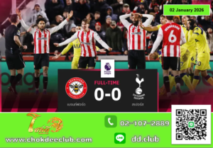 เบรนท์ฟอร์ด กับ สเปอร์ส ยิงกันไม่ได้ แบ่งกันไปฝั่งละแต้มต้อนรับปี 2026 โดย เควิน ชาเดอ แนวรุกเจ้าถิ่น สามารถส่งบอลเข้าประตูตั้งแต่ต้นเกม แต่โดนริบคืน ศึกฟุตบอล พรีเมียร์ลีก อังกฤษ 2025/26 ระหว่าง เบรนท์ฟอร์ด พบ ท็อตแน่ม ฮ็อทสเปอร์ ที่สนาม จีเทค คอมมิวนิตี สเตเดี้ยม วันพฤหัสบดีที่ 1 มกราคม 2569 ถือเป็นการกลับมาเยือนถิ่นเก่าครั้งแรกสำหรับ โธมัส แฟร้งค์ กุนซือ “ไก่เดือยทอง” เริ่มเกมได้ไม่กี่นาที เควิน ชาเดอ แนวรุก เบรนท์ฟอร์ด สามารถส่งบอลเข้าตุงตาข่ายจากจังหวะลูกเตะมุม แต่น่าเสียดายที่สุดท้ายไม่ได้ประตู เพราะเป็นลูกล้ำหน้า หลังจากนั้นทั้งสองทีมสู้กันได้สูสี แต่หาจังหวะทำประตูแบบจะแจ้งไม่ได้ จบครึ่งแรก เบรนท์ฟอร์ด กับ ท็อตแน่ม ฮ็อทสเปอร์ ยังเสมอกัน 0-0 ช่วงครึ่งหลังก็ออกมาในทิศทางเดียวกับครึ่งแรก และจบเกมด้วยการเสมอกันไปแบบไร้สกอร์ เบรนท์ฟอร์ด ขยับขึ้นอันดับเก้า […]