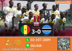 ทัพสิงโตแห่งเตรังกา เซเนกัล ประเดิมสนามศึกแอฟริกา คัพ ออฟ เนชันส์ ได้อย่างยอดเยี่ยม หลังถล่ม บอตสวานา 3-0 โดย นิโคลัส แจ็คสัน ระเบิดฟอร์มทำคนเดียวสองประตูในเกมนี้ การแข่งขันฟุตบอล แอฟริกา คัพ ออฟ เนชันส์ (AFCON) รอบแบ่งกลุ่ม กลุ่ม ดี นัดแรก ณ สนามในเมือง แทนเจียร์ ประเทศโมร็อกโก เป็นการพบกันระหว่าง ทีมชาติเซเนกัล อดีตแชมป์ปี 2021 พบกับ ทีมชาติบอตสวานา ทีมอันดับต่ำที่สุดในทัวร์นาเมนต์นี้ เริ่มเกมเพียง 4 นาที เซเนกัล พยายามเปิดเกมบุกเข้าใส่ทันทีและเกือบได้ประตูขึ้นนำจากจังหวะที่ นิโคลัส แจ็คสัน ได้โอกาสยิงแต่ถูก กอยต์โซน โพโก ผู้รักษาประตูบอตสวานาบล็อกไว้ได้ ถัดมาเพียงนาทีเดียว โพโก ต้องออกแรงเซฟอีกครั้งจากลูกโหม่งระยะเผาขนของ ซาดิโอ มาเน่ ทัพ “สิงโตแห่งเตรังกา” ภายใต้การคุมทีมของ ป๊าป […]